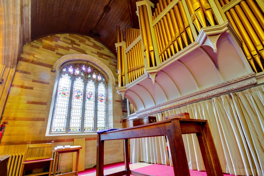 The organ at Edgbaston Old Church. Organ music and hymns play an important part in Church of England services, they give the service structure and are one of the key ways in which members of the congregation participate.