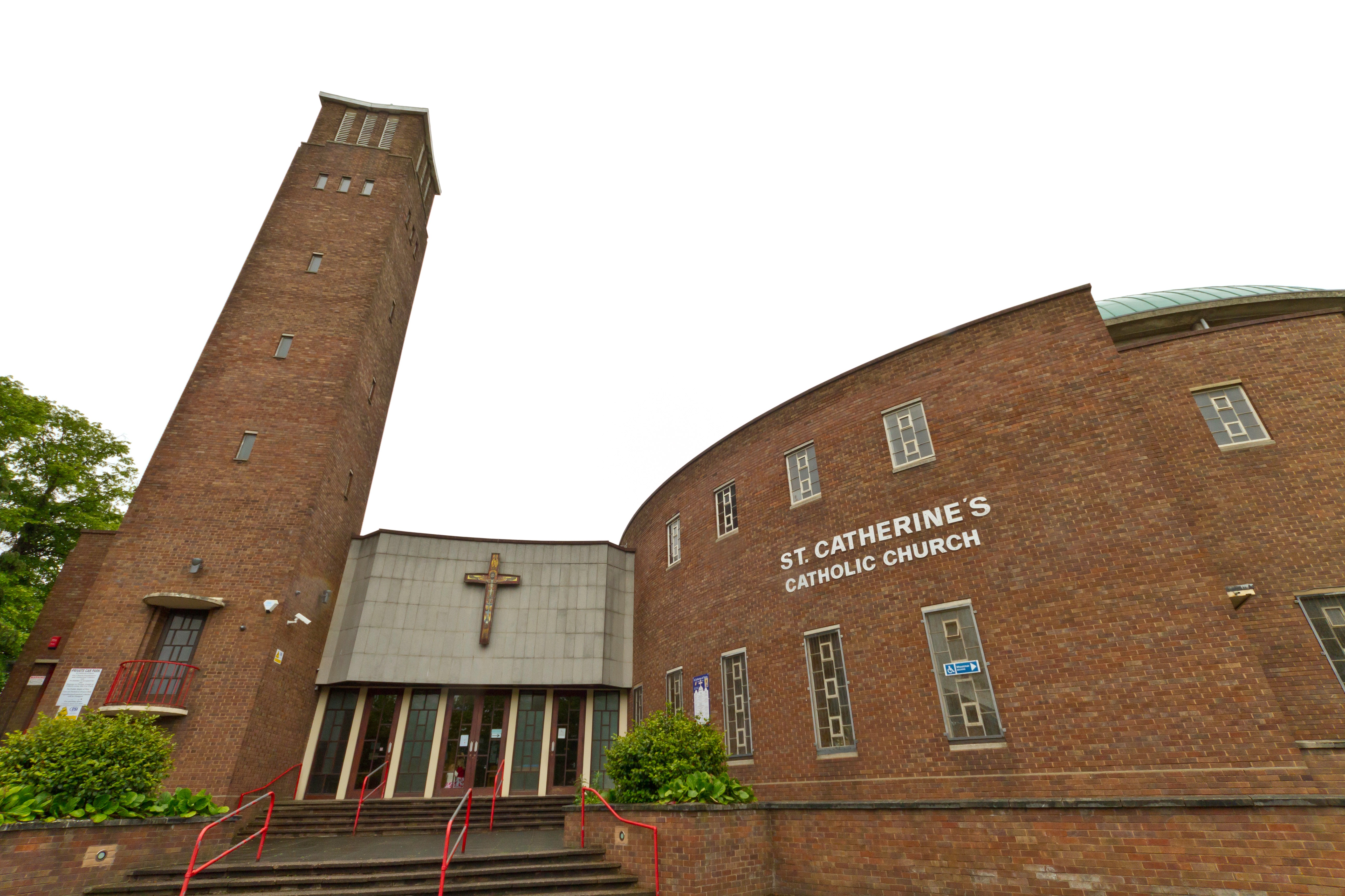 Catherine of Sienna Roman Catholic church, central Birmingham. Built in the 1960s in a modern, inclusive style it nonetheless harks back to ancient churches in the Mediterranean world at the same time.