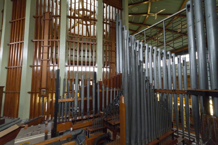 The organ at The organ pipes at the Catherine of Sienna Roman Catholic church, central Birmingham. Whilst singing is less important in Roman Catholicism than in some other Christian denominations, the organ and musical interludes still play a very important part in the structure and running of services.