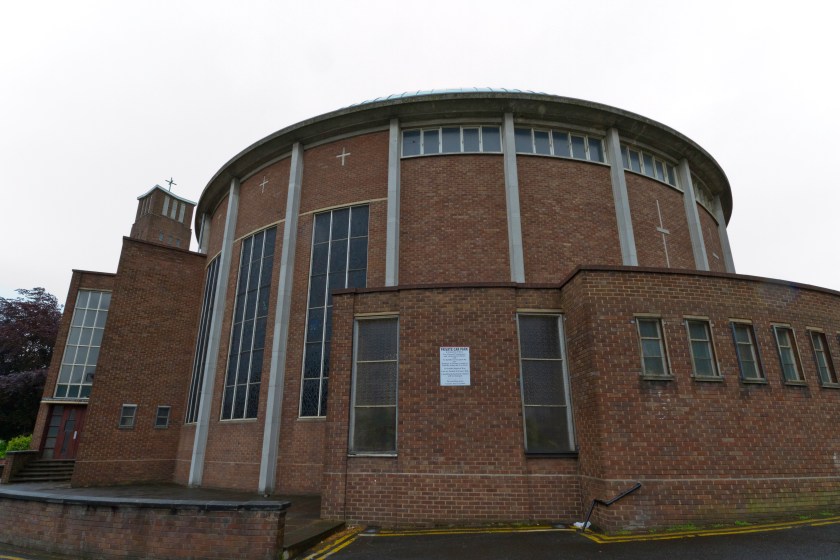 The basilica of the Catherine of Sienna Roman Catholic church, central Birmingham. Built in the 1960s in a modern, inclusive style it nonetheless harks back to ancient churches in the Mediterranean world at the same time.