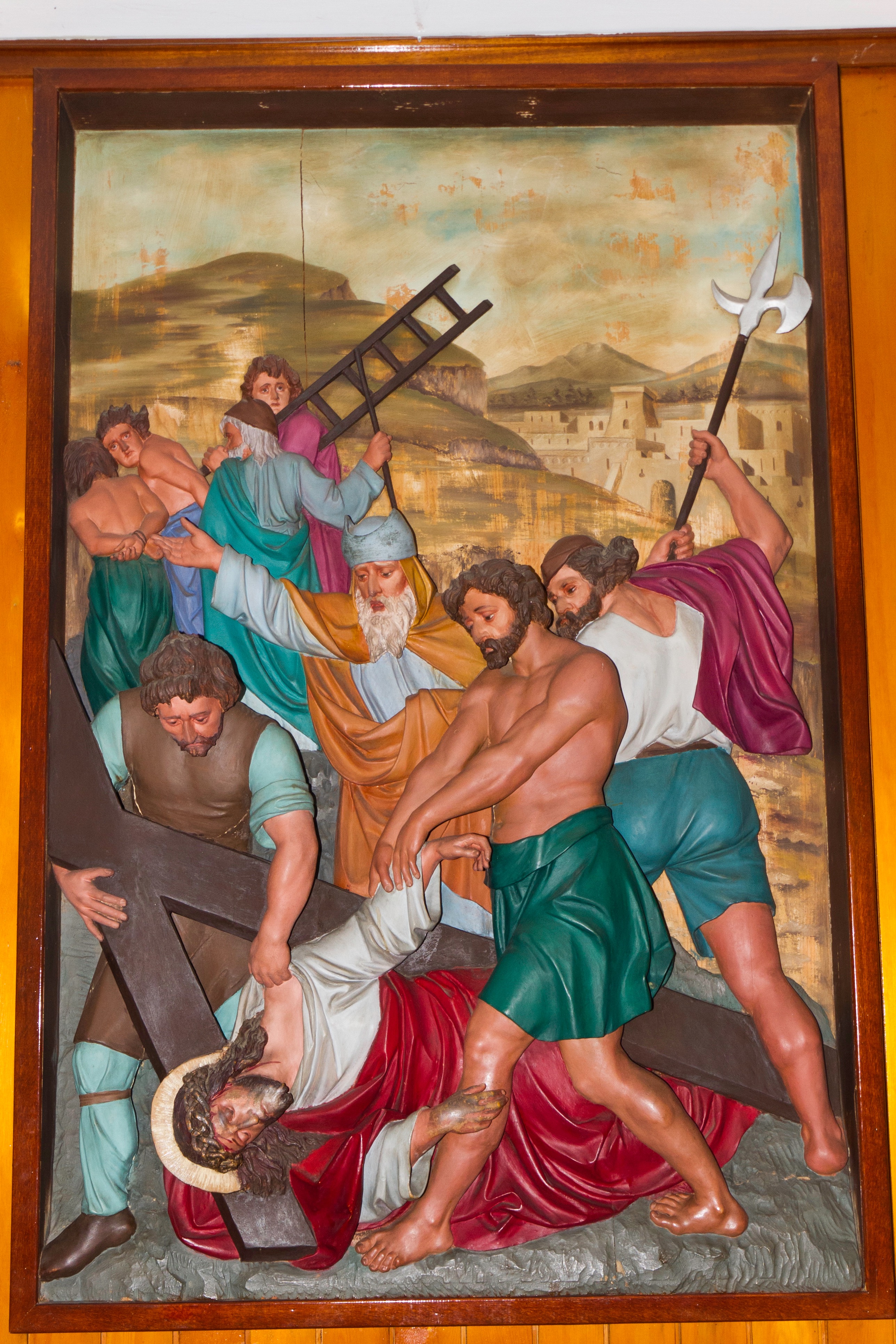 Modern Painted images showing Jesus’ progress to Calvary (where he was executed). They are found on the walls of the St. Catherine of Sienna Church in Birmingham.