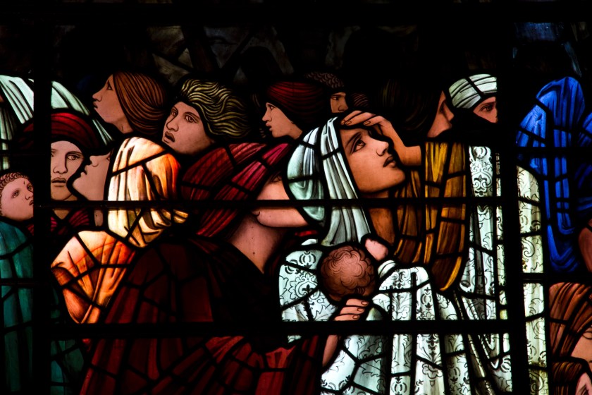Previous Image Close Up of People Observing Jesus in Heaven Close up of Edward Burne-Jones’ window in St. Philips’ Cathedral, Birmingham; showing Jesus arrayed in heaven. Like Loading...