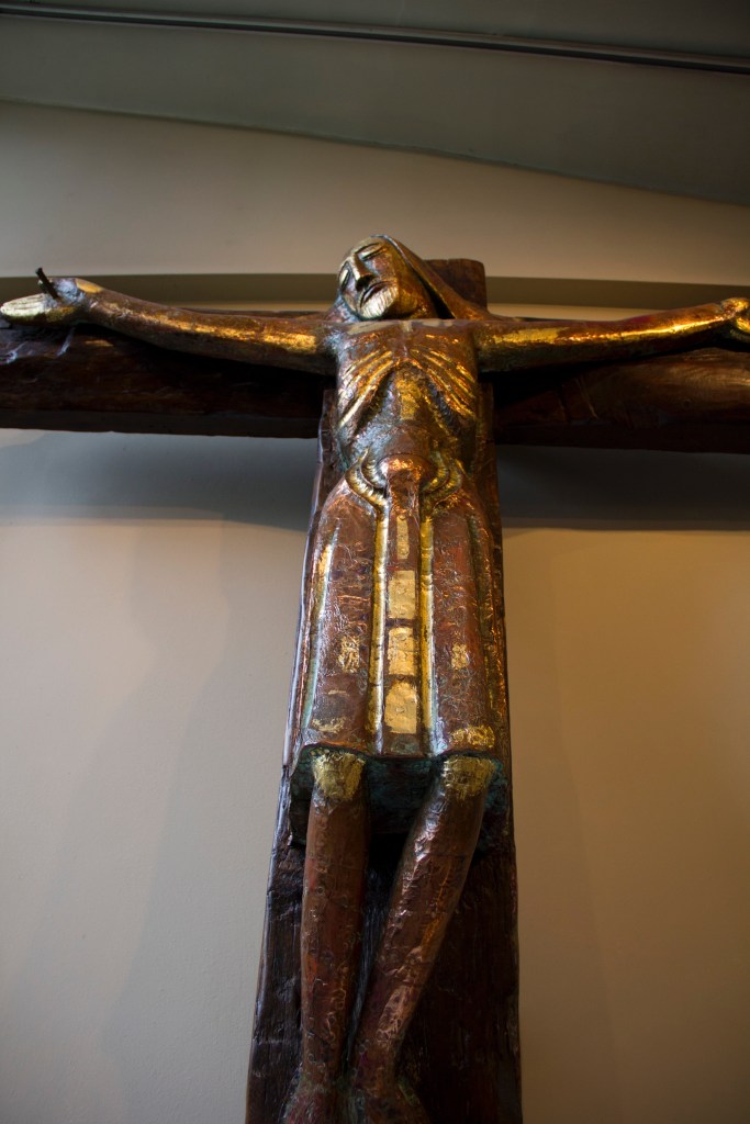 Previous Image Next Image SPC_Interior 36 Close up of a heavily stylised modern crucifix hanging over a small side chapel altar in St. Philips’ Cathedral, Birmingham. St Philips Cathedral, Christianity, church, Birmingham, statue, modern, contemporary religion, Christ, Crucifix Like Loading...