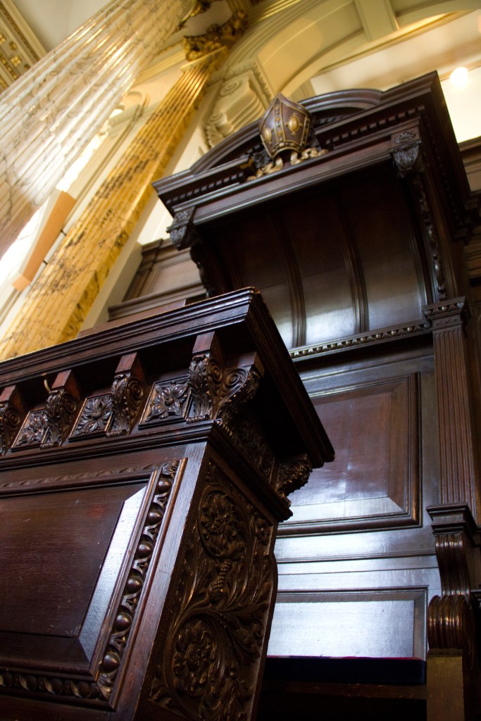 The Bishop of Birmingham’s seat at St. Philips’ Cathedral, Birmingham. This important chair has a connection to the meaning of the word “cathedral” itself. The Latin for throne is “cathedra”, bishops are described as being “ex cathedra” (trans. “on the throne”). As such the bishop’s chair itself has great importance within the branches of Christianity-like Anglicanism-which have bishops.
