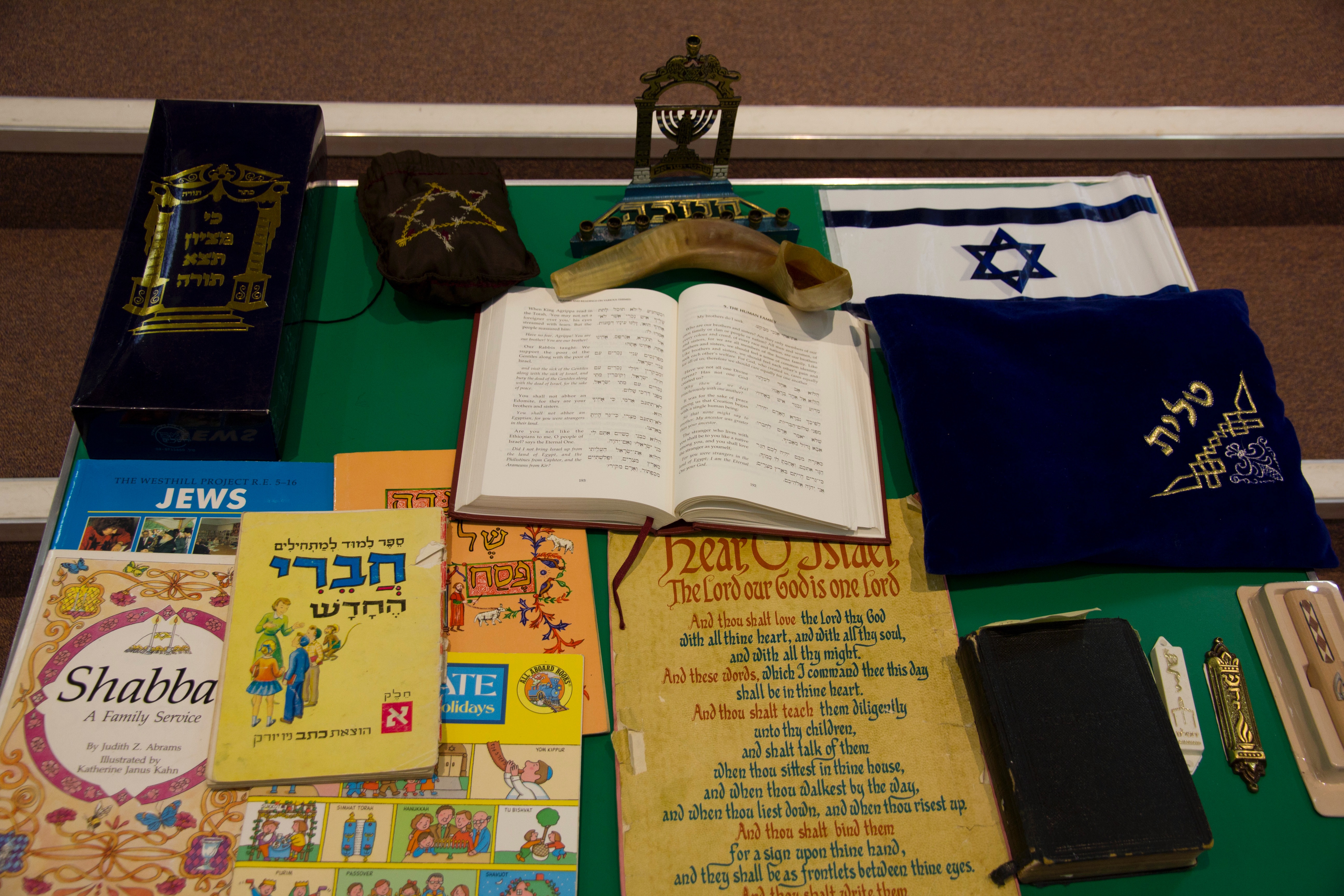 A range of Jewish religious items and texts.