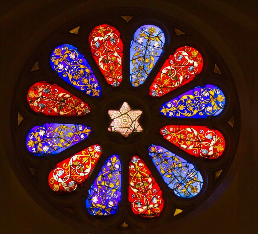 Previous Image Next Image Stained Glass Rose Window Decorative rose shaped stained glass window in the Singers Hill Synagogue, Birmingham. Like Loading...