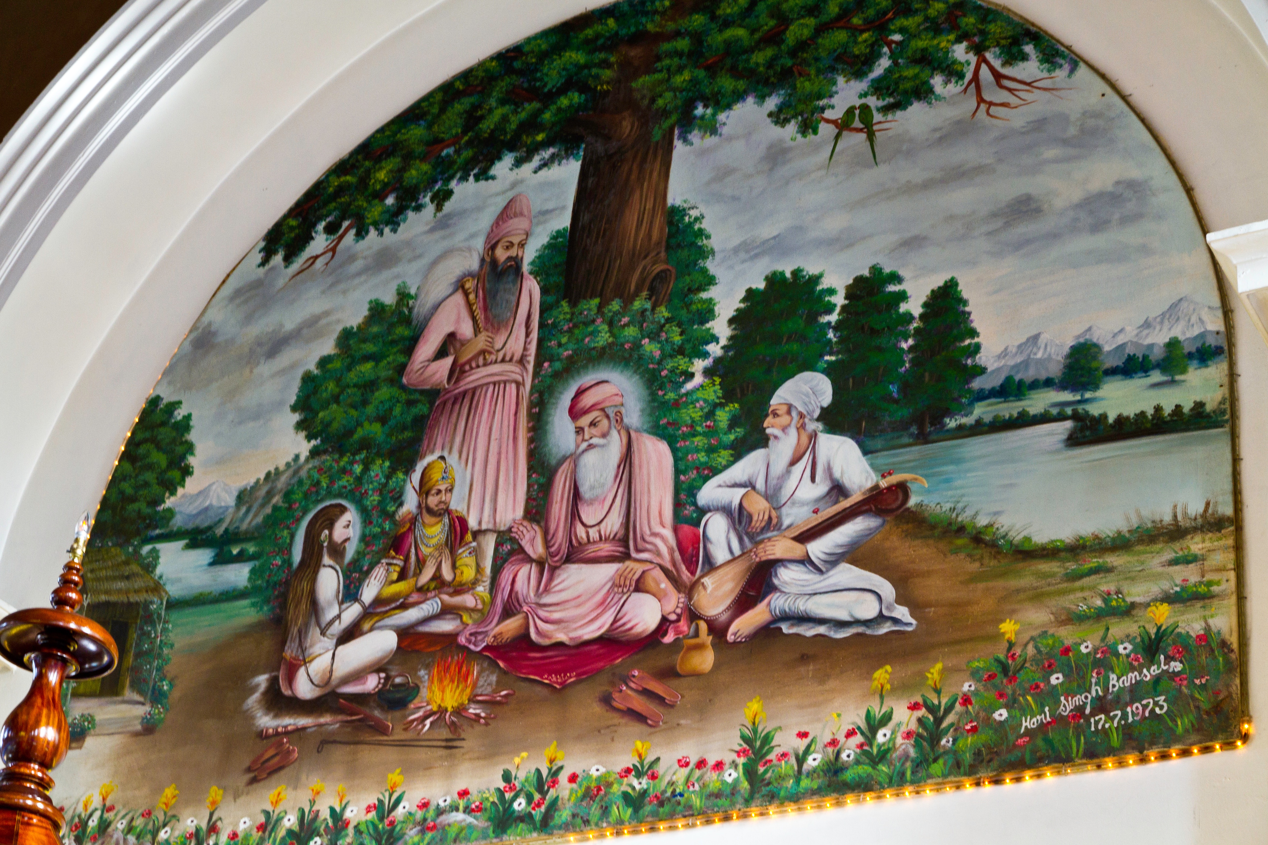Previous Image Next Image Ramgharia Gudwara-22 A group of significant Gurus (spiritual leaders), including Guru Nanak the founder Sikhism. It is painted on the Gudwara wall. Like Loading...