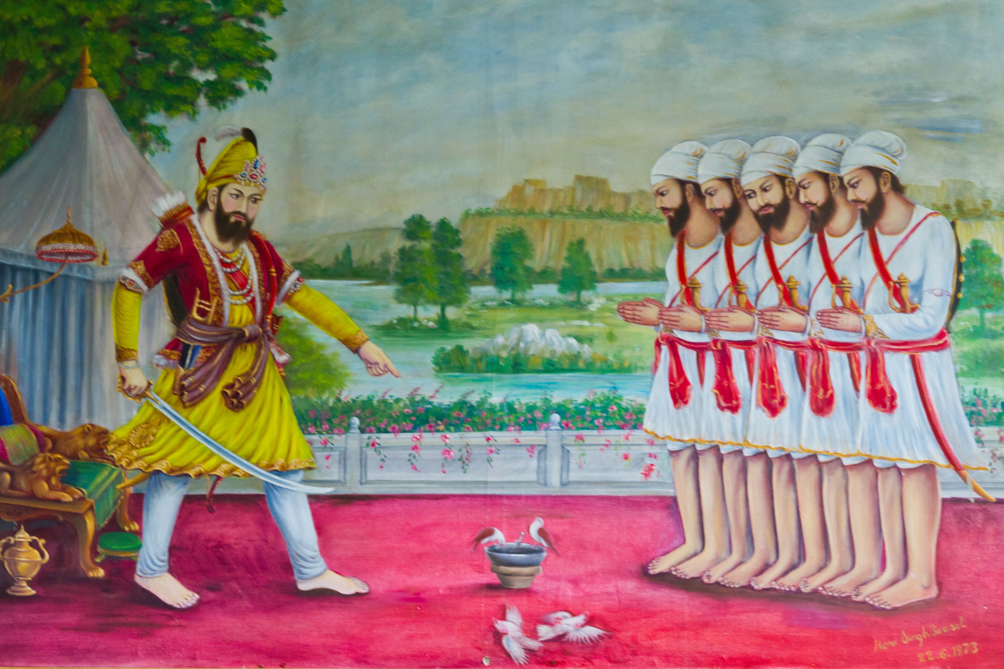 Warriors are very important in Sikhism. This is because of their historic status in India as an (at times) embattled minority. These ones are painted on the Gudwara wall.
