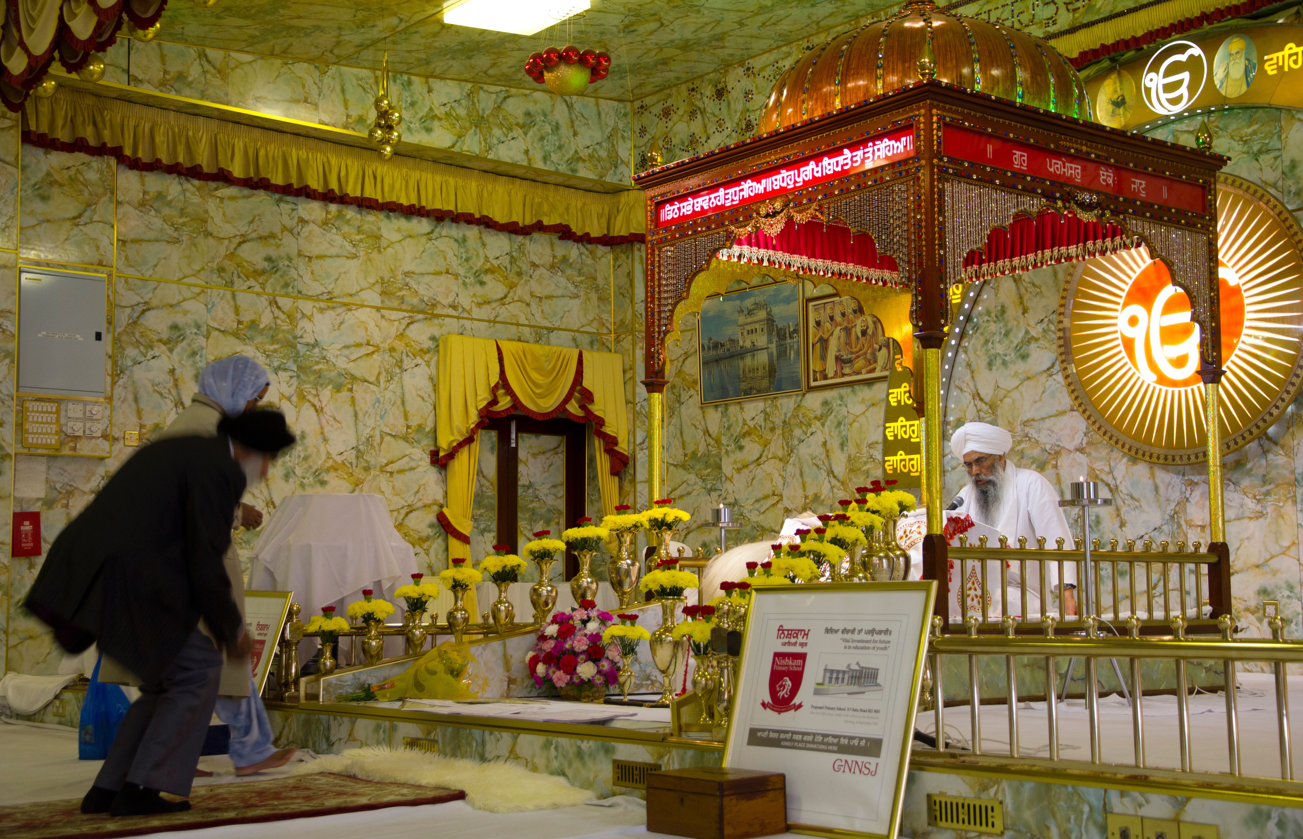 Worshipers approach the altar at the Gudwara.