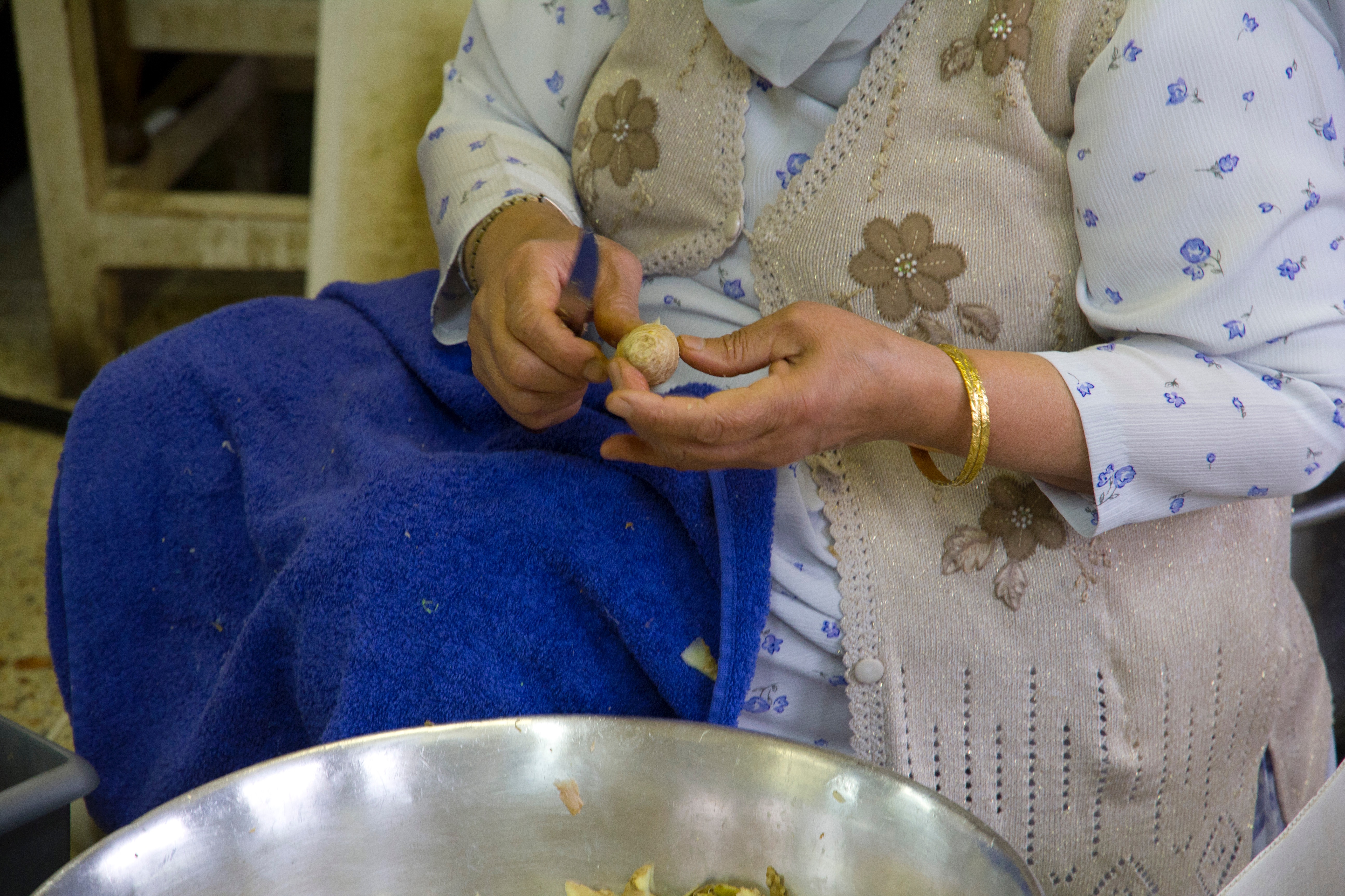 A worker in the Gudwara’s kitchen preparing food.