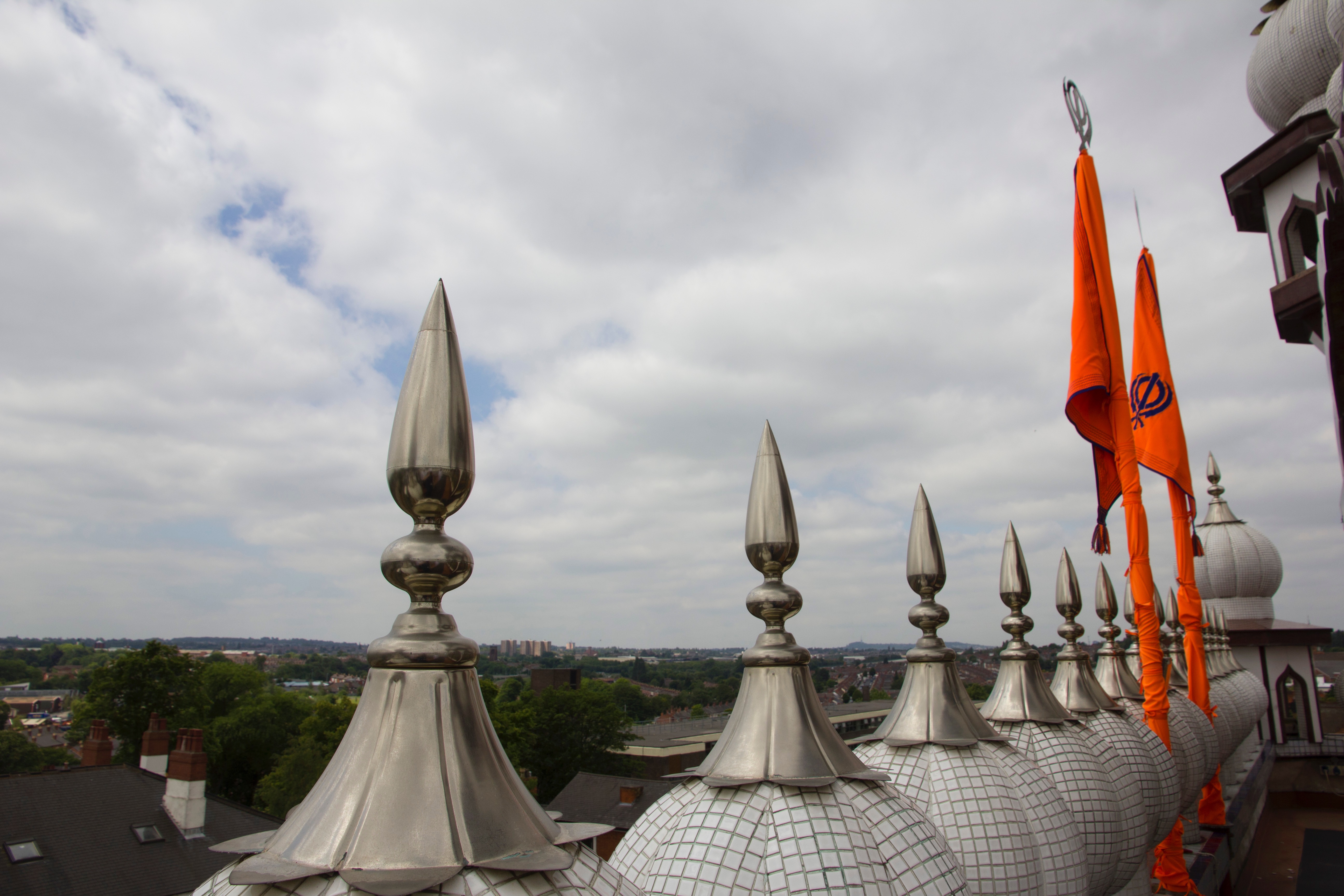 Religious banners fly from the Soho Road Gudwara